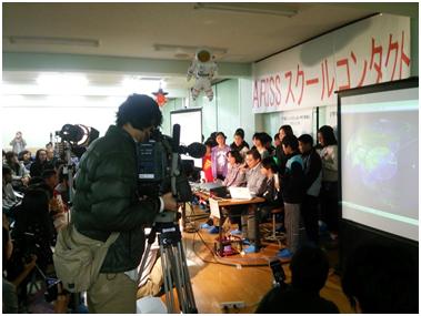 京都市立洛陽工業高等学校で京都市立唐橋小学校の5,6年生21人が国際宇宙ステーションの若田宇宙飛行士と交信に成功しました。12月12日午後5時37分から約10分間の予定で、スケジュールが組まれました。実際の交信は、オペレーターの高橋さんが臨時局の8N3LRから宇宙ステーションのNA1SSを呼びだしはじめて約2分後に、「洛陽工業高校のみなさん聞こえますか?」「宇宙ステーションから若田です!よく聞こえます!」との応答があり、21人の児童が質問し、それに答える方法でスクールコンタクトが始まりました。無事21問が終了し、高橋先生からISSのトラブルについて若田光一宇宙飛行士に質問し、答えを頂き、洛陽工からのお礼のメッセージを送り、無事に交信成