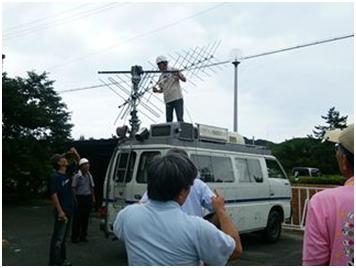 時間が過ぎていく中、私の携帯電話に総通の監視の方から連絡がありました。学校のほうに出向きたいとのことでした。前もって連絡を総通から受けていたので、監視車両から2名が降りてこられて対応を行いました。アンテナの設置状況や会場となる教室にも来ていただき、監視状況からしても問題はないでしょうが、引き続き監視活動を行っていただくとの回答を得ました。